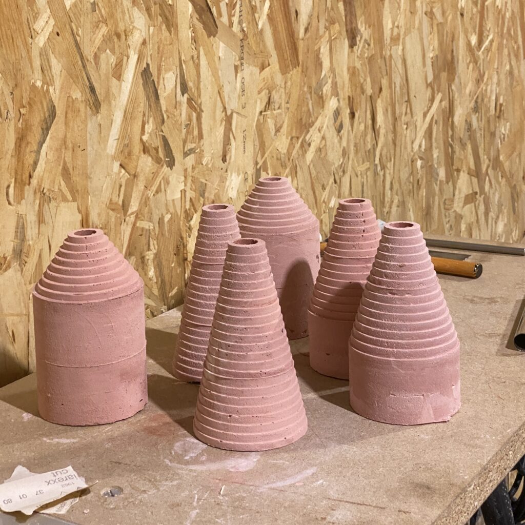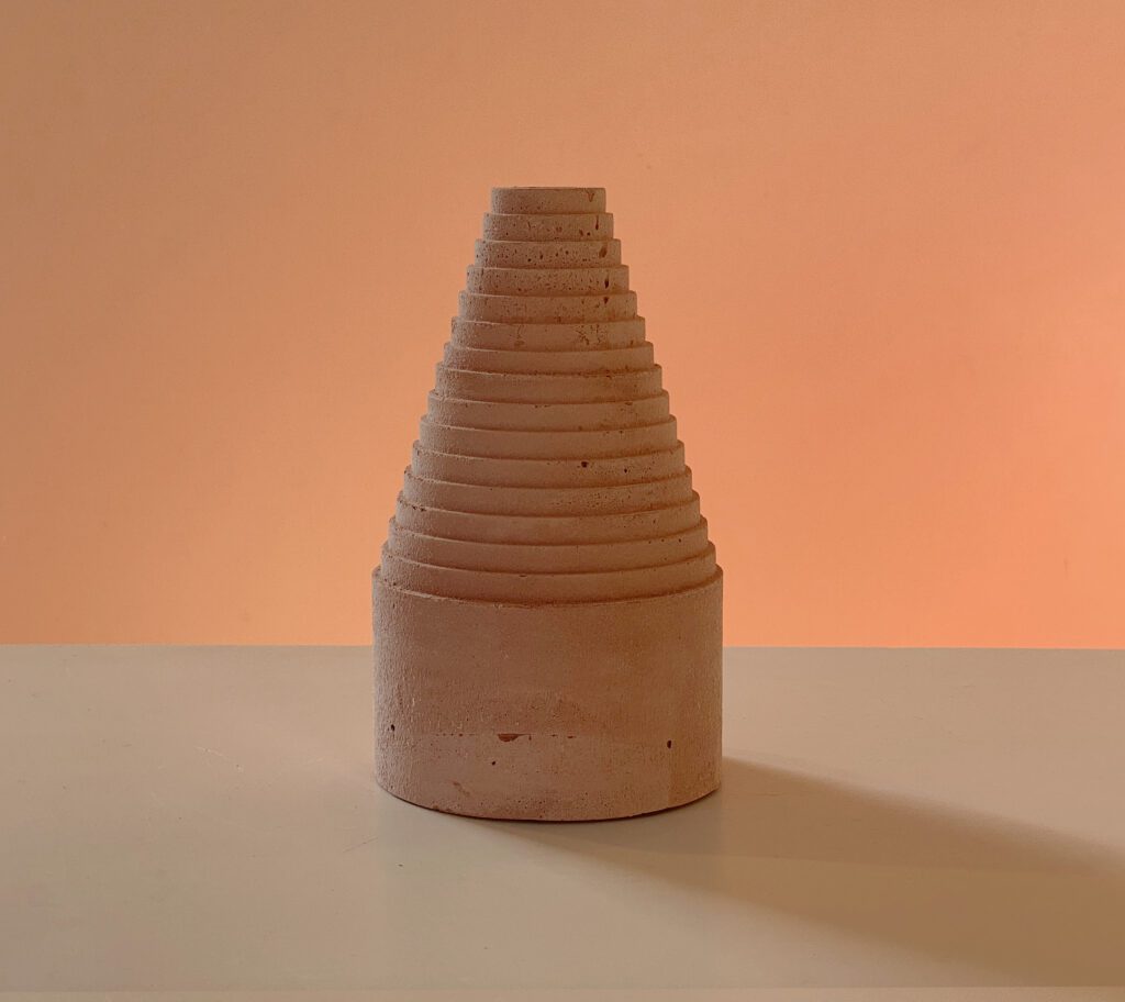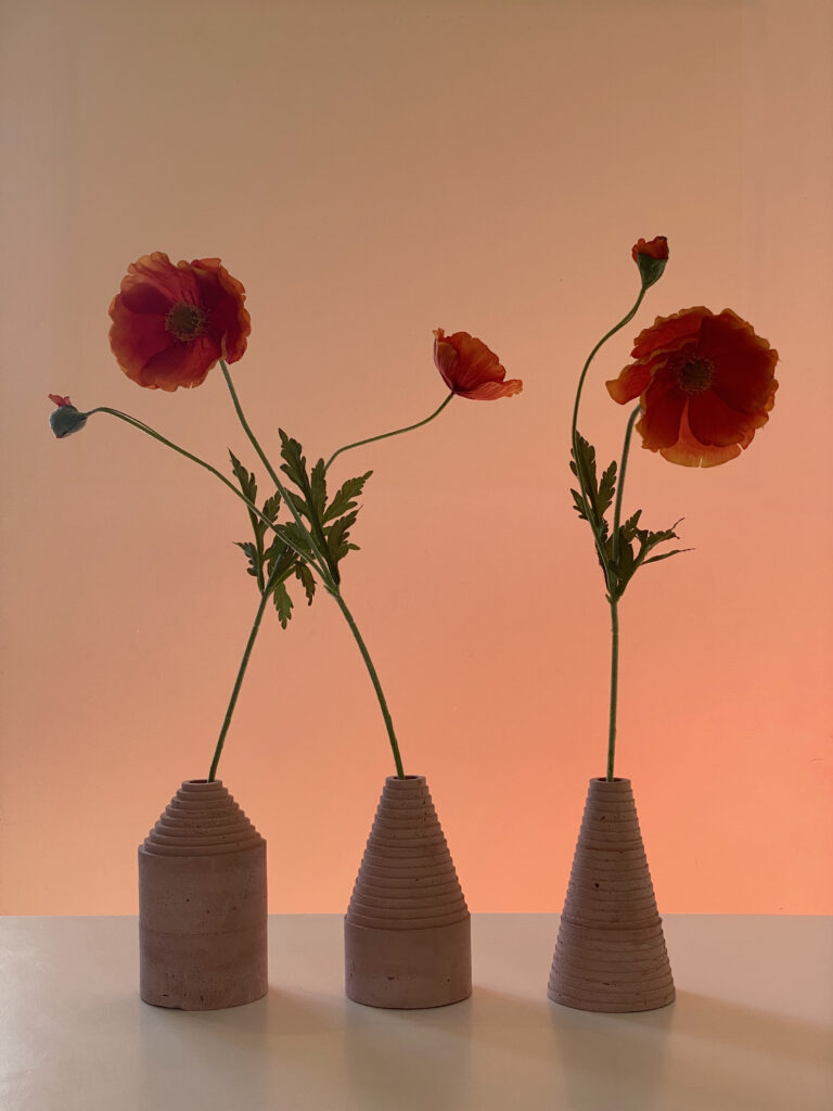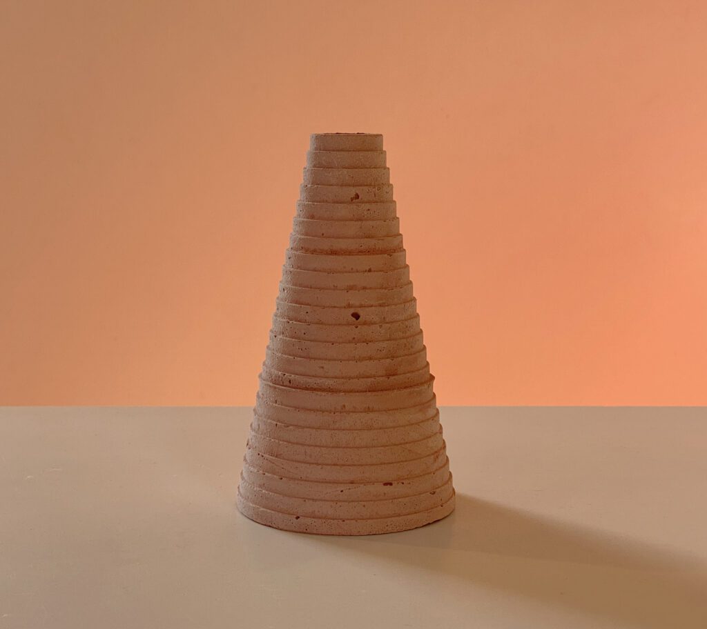 Ce projet personnel explore la matière minérale à travers un procédé de fabrication numérique. Les trois déclinaisons du vase Koniko ont été réalisées à partir d'un moule en polystyrène extrudé usiné avec une fraiseuse à commande numérique (CNC). Après une première phase de réflexion et de conception menée en amont sur les possibilités et les contraintes du moulage et de l'usinage numérique, le défi a été de programmer la machine afin de passer d'une forme numérique à une succession d'étapes d'usinage interprétables par celle-ci.