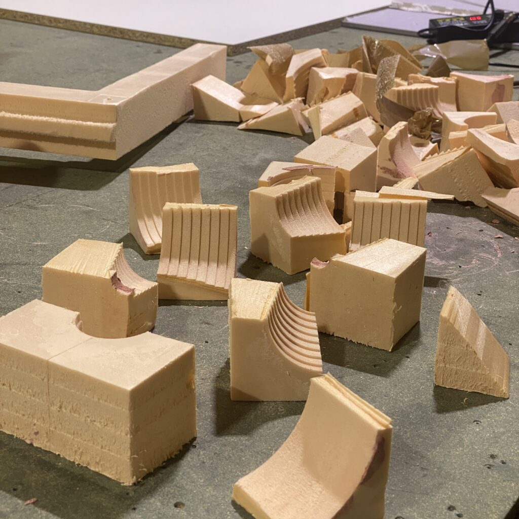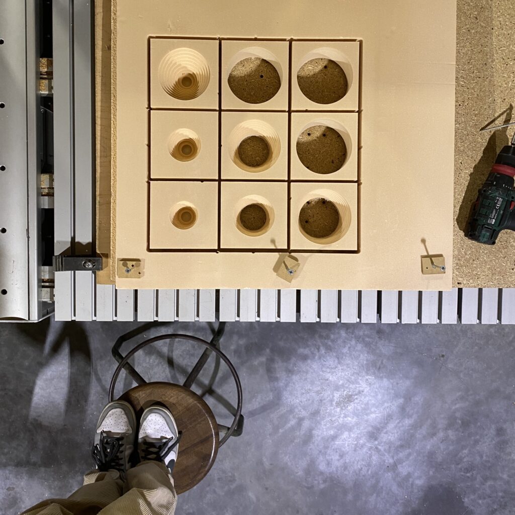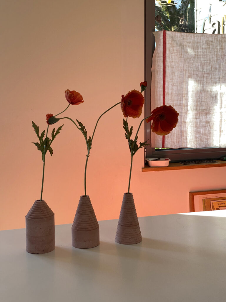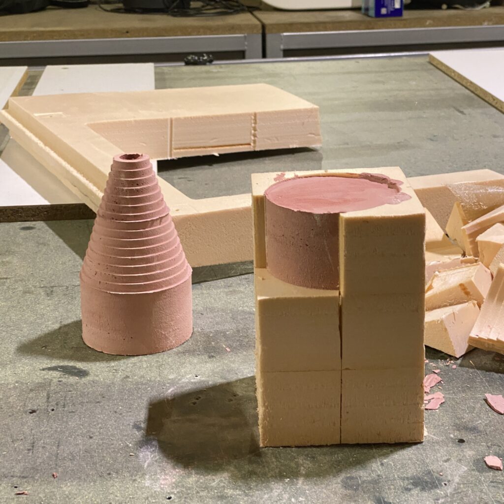 Ce projet personnel explore la matière minérale à travers un procédé de fabrication numérique. Les trois déclinaisons du vase Koniko ont été réalisées à partir d'un moule en polystyrène extrudé usiné avec une fraiseuse à commande numérique (CNC). Après une première phase de réflexion et de conception menée en amont sur les possibilités et les contraintes du moulage et de l'usinage numérique, le défi a été de programmer la machine afin de passer d'une forme numérique à une succession d'étapes d'usinage interprétables par celle-ci.