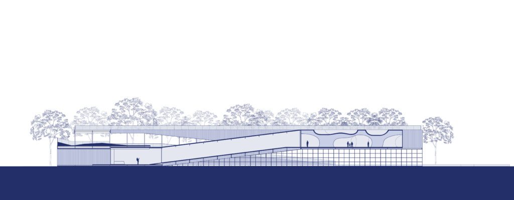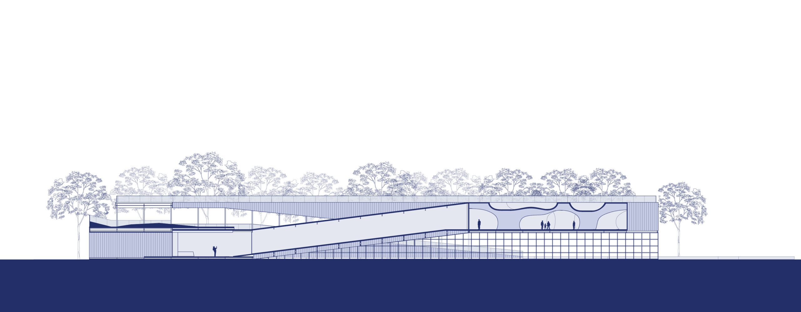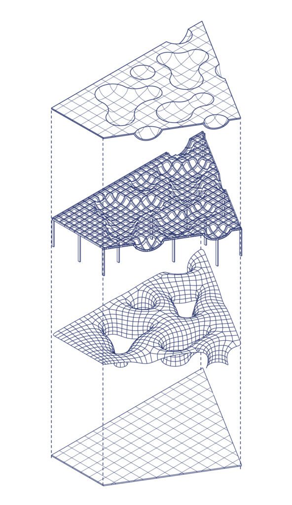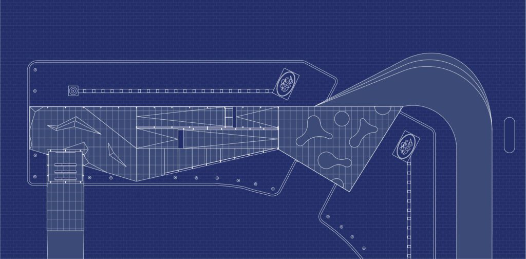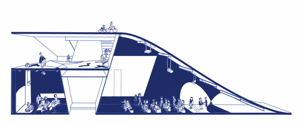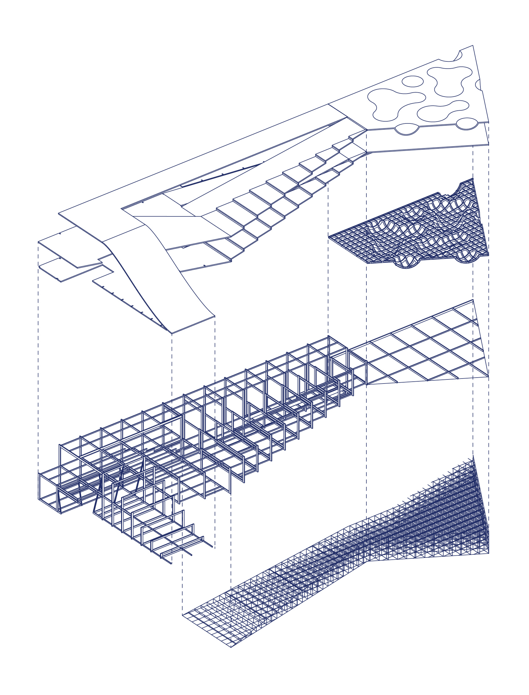 Dans le cadre des Jeux olympiques de Paris en 2024, cet exercice avait pour objectif de concevoir une série de pavillons sur les Champs-Élysées, combinant des activités culturelles et sportives. Notre projet s'organise autour de trois programmes : le skateboard, le BMX et une galerie d'art vidéo. Une ascension sur deux niveaux superposés s'intègre dans la continuité de la rue, où les activités sportives et culturelles coexistent sans jamais se rencontrer.