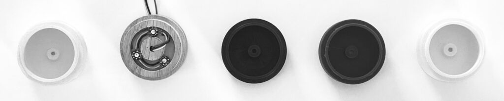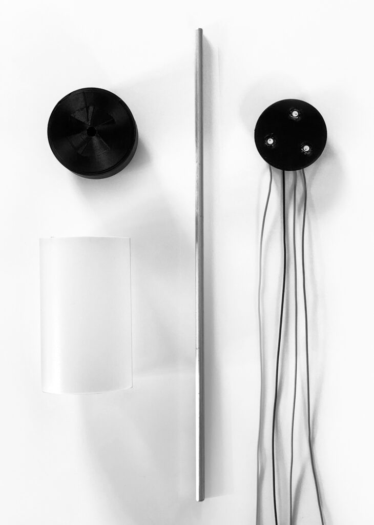 Le lustre Palette regroupe dix lampes composées de trois LEDs RGB chacune. Contrôlables à partir d'une carte électronique et d'un algorithme, ce projet est encore au stade d'étude. Il a la capacité de fournir des ambiances et des combinaisons lumineuses adaptées à plusieurs paramètres tels que l'heure de la journée, l'ensoleillement, etc.