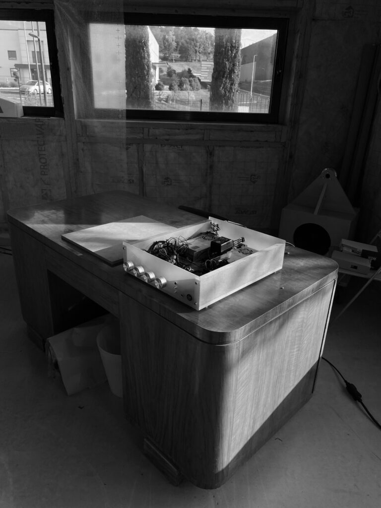 Recherches autour de la création d’enceintes et de systèmes d’amplification, envisagés comme des objets techniques autant que spatiaux. J'explore les relations entre son, matière et architecture, en interrogeant la manière dont les dispositifs de diffusion façonnent l’espace, l’écoute et les usages. Ces projets croisent expérimentation, fabrication et réflexion sur l’inscription du son dans l’environnement. Projet en cours ...